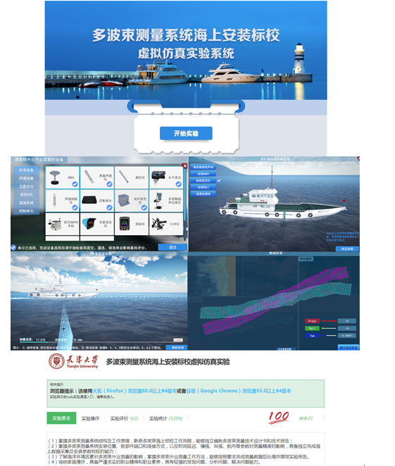 多波束测量系统海上安装标校是开展海洋测量工程的必要准备,也是《海底地形测量》和《海洋测量实习》课程的重要内容。本实验由海洋技术系张安民主任领衔,集合优秀教学团队、融合最新科研成果,利用三维仿真和虚拟现实技术,将多波束海上安装标校搬到线上,解决了传统多波束海上实验费用高、安全性差、亲身操作困难等问题,帮助学生深刻理解和掌握多波束系统海上安装、参数标定、误差校准等技术细节,实现多波束课堂理论知识讲授与外业测量实际操作的有机结合,提升学生解决复杂工程问题的能力。本虚拟仿真实验具有中英文版本,目前在免费成人影片 免费成人影片 本科教学、“中国-东盟”智慧免费成人影片 、交通运输部北海航海保障中心天津海事测绘中心业务培训中实际使用。本课程已完成天津市一流课程建设,正在参评国家级一流课程。未来,我们将继续完善海洋探测技术系列虚拟仿真实验课程,以现代信息技术展现复杂海洋环境下海洋测量工程实践,助力复合型海洋科技人才培养、助力国家“海洋强国”建设。
