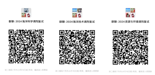 2.海洋科学复试时间:4月10-11日(具体分组面试群里通知);海洋技术复试时间:4月10日(具体分组面试群里通知);资源与环境复试时间:4月10日(具体分组面试群里通知)。