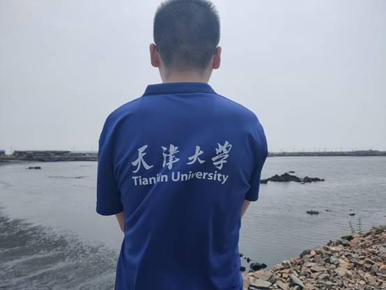 图为实践队员在海边进行调研。