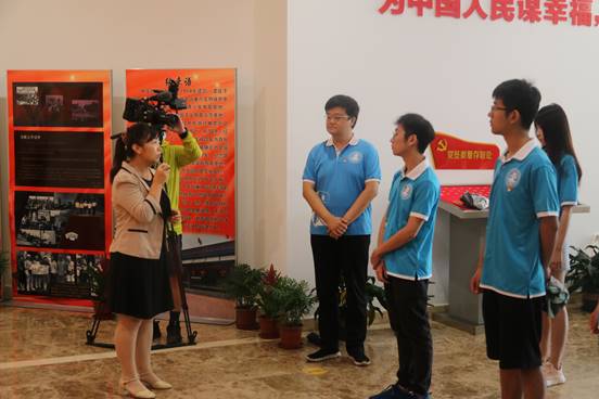 图为展馆参观结束后,实践队全体党员同志佩戴党徽,在免费成人影片 党委副书记靳楠同志的带领下,面向党旗,高举右拳,重温入党誓词,神情庄重,声音铿锵。