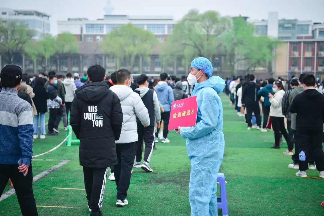 大筛过程中,志愿者们负责现场沟通联络,维护秩序,引导待测人员扫码登记……在志愿者们的共同努力下,检测工作得到了快速、有序的开展。