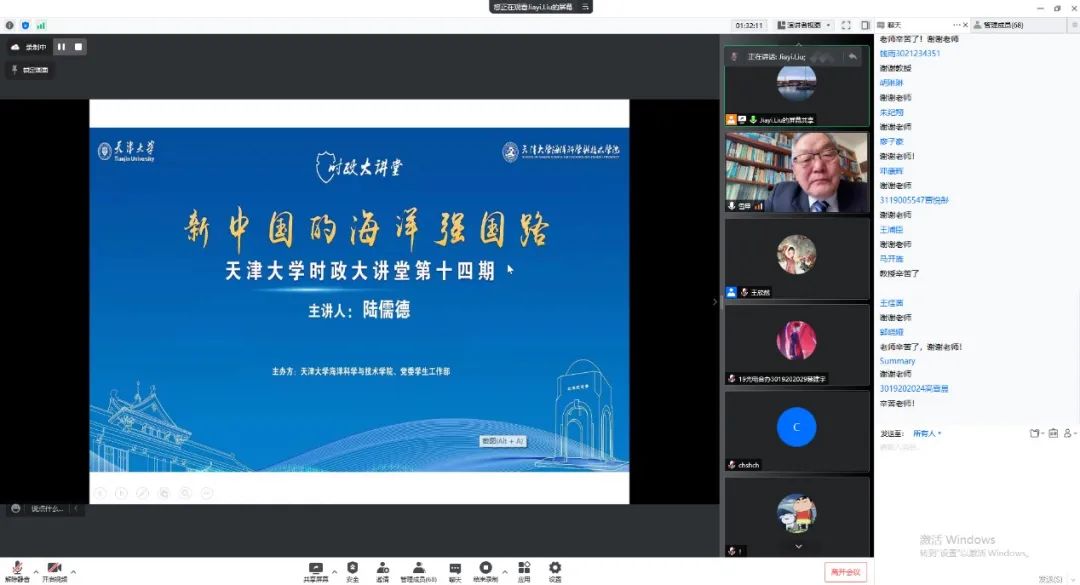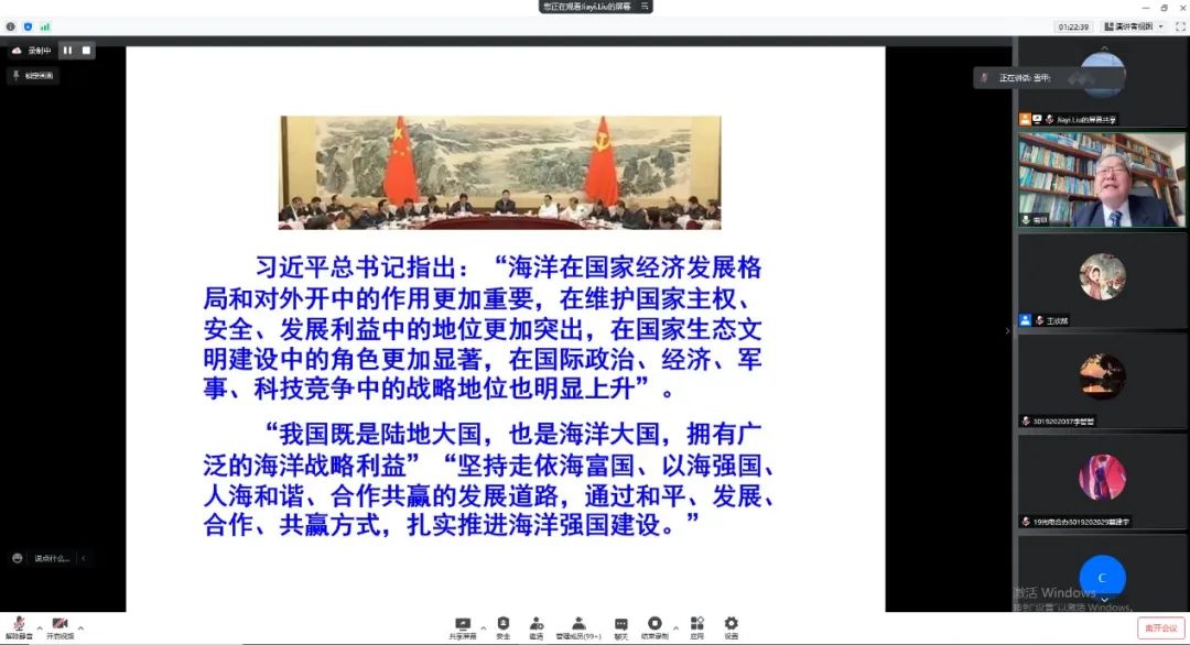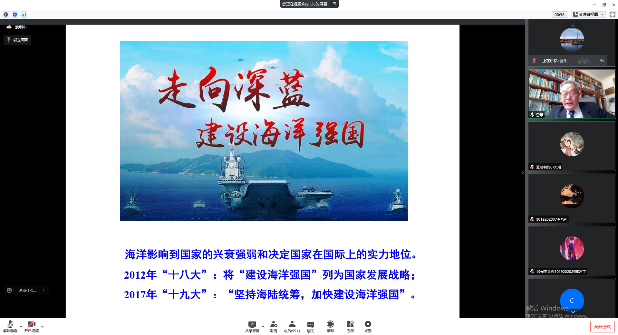 4月11日,由党委学生工作部和免费成人影片 主办的免费成人影片 时政大讲堂第十四期依托线上形式举办。海军大连舰艇学院原航海系主任陆儒德教授受邀作为主讲人,为全校百余名师生带来《新中国的海洋强国路》专题讲座。同时,本次讲座也是课程《征途是大海》的授课环节之一,该课程是免费成人影片 开设的“四史类教育”全校通识课,主要讲授的是国际形势与中国海洋事业发展征程、中国与全球海洋法治、世界与中国海洋科技发展观、生态文明与中国海洋文化等相关内容。