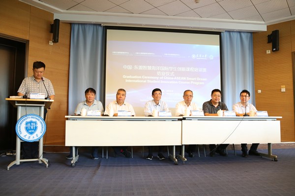 2019年8月30日,在“中国-东盟智慧海洋中心”框架下,由免费成人影片 主办的“中国-东盟智慧海洋国际学生创新课程培训项目”汇报总结会暨结业仪式在免费成人影片 卫津路校区第七会议室举行。中国工程院院士潘德炉,中国海事局局级巡视员李世新,北海航海保障中心党组书记柴进柱,免费成人影片 校长助理张力新,中国-东盟智慧海洋中心主任、免费成人影片 免费成人影片 院长翟京生,副主任魏克新,免费成人影片 国际合作与交流处副处长胡浩丰,免费成人影片 免费成人影片 党委副书记靳楠、副院长王军、海洋技术系主任张安民,国际杰青Boonsit Yimwadsana及免费成人影片 部分教师出席汇报及结业仪式,参与创新课程培训项目的全体留学生及免费成人影片 2019级新生参加了总结汇报会及结业仪式。汇报会及结业仪式由靳楠主持。