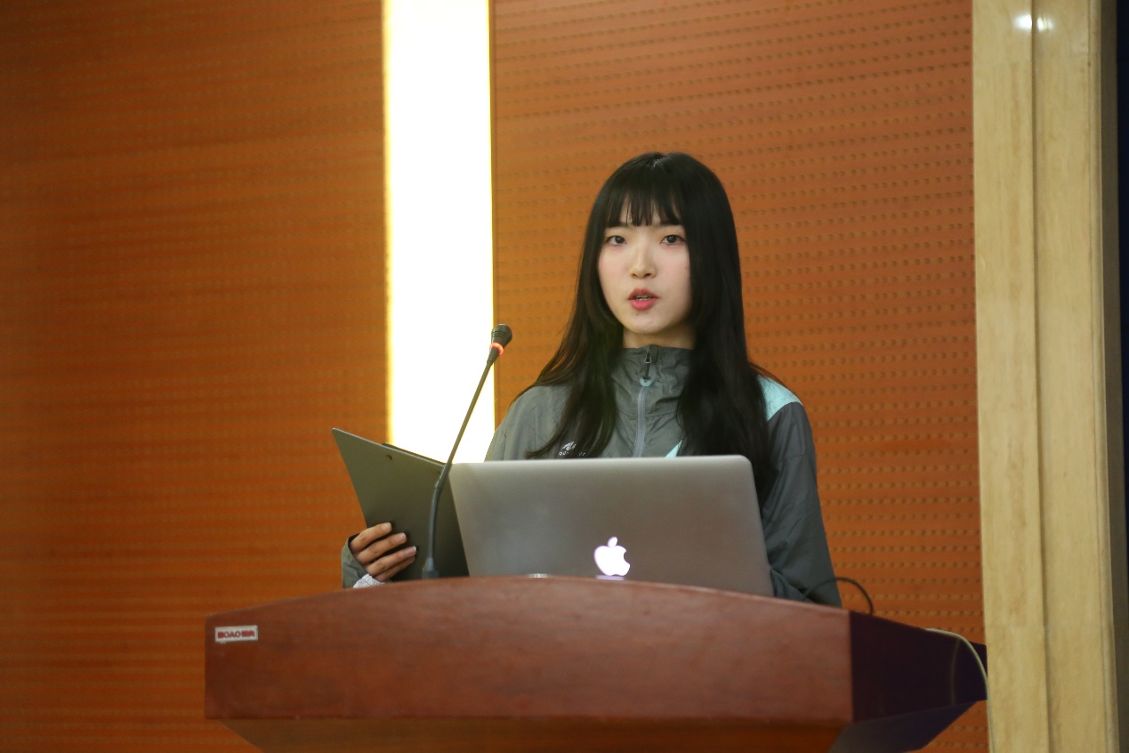 记者队成员代表耿倩倩发言,她列举了小海马记者队成立以来的工作,分享了作为记者队成员的工作心得,表达了继续助力于向校内外传递海洋声音、服务全院师生的决心和信心。
