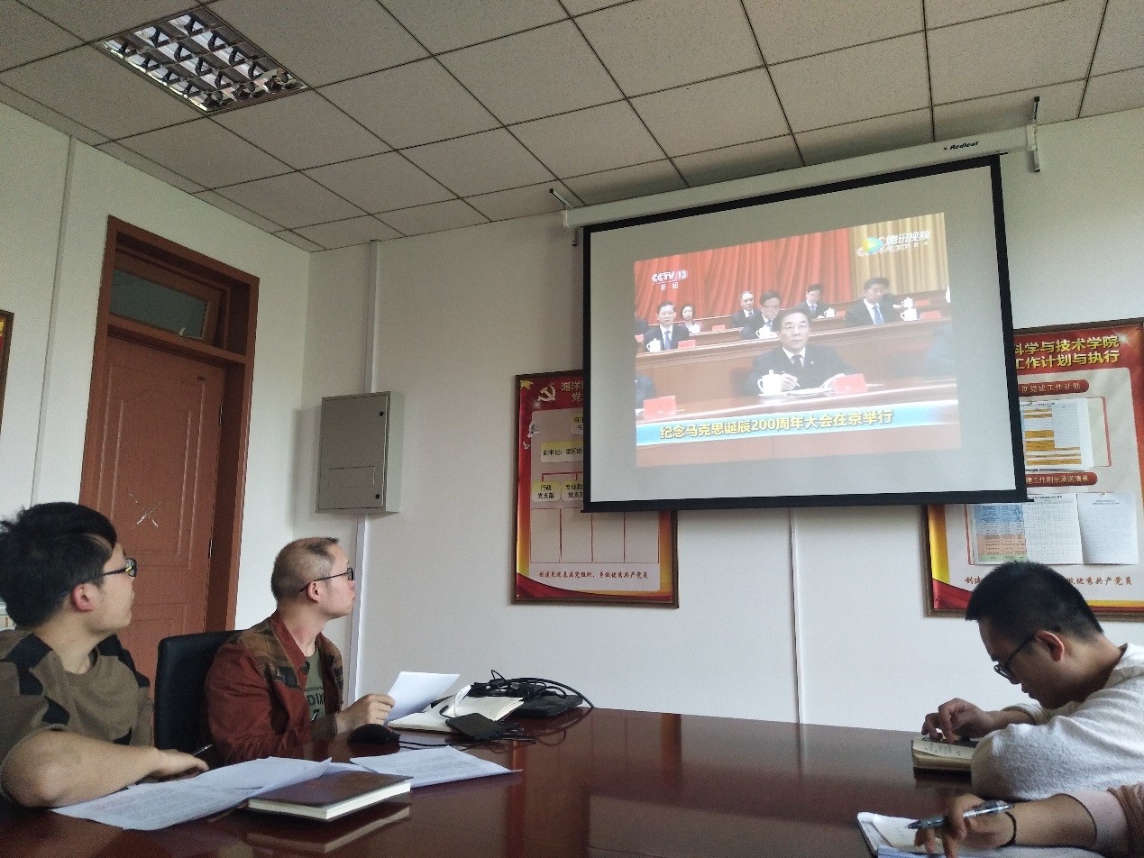 随后,支部成员认真研习习总书记在纪念马克思诞辰200周年大会上的重要讲话。王梦涵同志对马克思主义是人民的理论这一点印象深刻,她认为马克思主义始终站在人民立场上,代表着广大人民利益,这与中国共产党的性质是一致的。在实践中,中国共产党人把马克思主义基本原理同中国革命和建设的具体实际结合起来,建设中国特色社会主义道路,但始终不变为人民服务的根本宗旨,始终坚持着马克思主义的人民性。我们在探索学习马克思主义的过程中,要善于把握其精神内核。