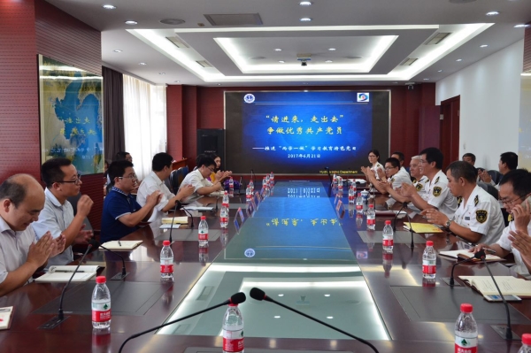 业务交流环节中,海测中心测量船舶党支部张墨起介绍了海测中心的主要业务,包括海图测绘任务、航路扫测任务、通航尺度核定测量任务、应急抢险扫测任务等,并详细介绍了相关主要测量设备,包括GPS接收机、单波束测深系统、多波束测深系统、侧扫声呐系统等。随后,师生党员围绕“一带一路”战略建设进一步深入交流。