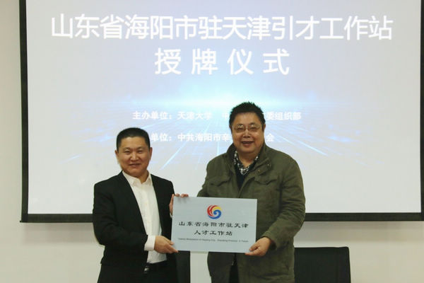 随后,翟京生、孙晓波共同签署了《关于合作建立海阳市驻天津引才工作站的协议》,孙晓波向免费成人影片 授牌,成立了山东省海阳市驻天津人才工作站牌。