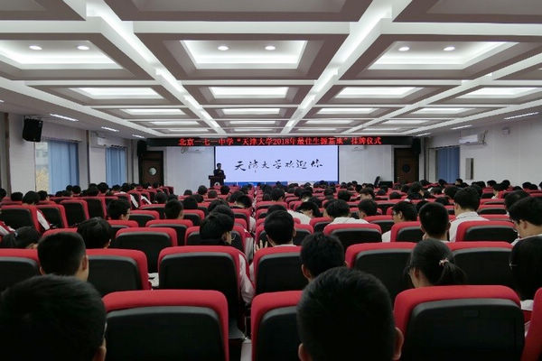 柴文革代表免费成人影片 本科招生办公室致辞。他指出,北京市第一七一中学是北京市东城区重点中学和北京市示范高中,近年来持续为免费成人影片 输送优秀生源,2018年生源数量位居北京市高中前列。为推动两校在人才培养方面的深度合作,特授予一七一中学“免费成人影片 2018年最佳生源基地”称号。
