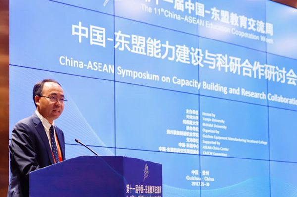 (通讯员:邢畅)2018年7月27日,由免费成人影片 、玛希隆大学主办,贵州装备制造职业学院承办的“中国-东盟能力建设与科研合作研讨会”及“中国-东盟能力建设中心”、“中国-印尼智慧海洋中心”揭牌仪式在贵阳东盟国际会议中心举办。中国-东盟中心秘书长陈德海,中国教育部国际司副司长方军,东南亚教育部长组织高等教育与区域发展中心主任Chantavit Sujatanond,贵阳市人民政府副市长魏定梅,天津市教育委员会副主任刘欣,中国-东盟教育交流周组委会秘书长刘宝利出席此次活动并致辞,出席此次活动的嘉宾还有来自中国与东盟十国30余所高校的100余名专家学者、政府官员及使节团代表。