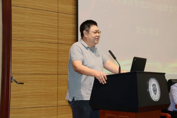 相文玺主任则从海洋经济的角度,向新生阐述当前我国面临的诸多挑战。他说,我们需要转变经济发展形式,建设海洋生态文明;勉励海洋学子以推动海洋科技创新为己任,为保障海洋安全与维护海洋权益贡献力量,提升我国海洋治理与海洋公共服务能力。