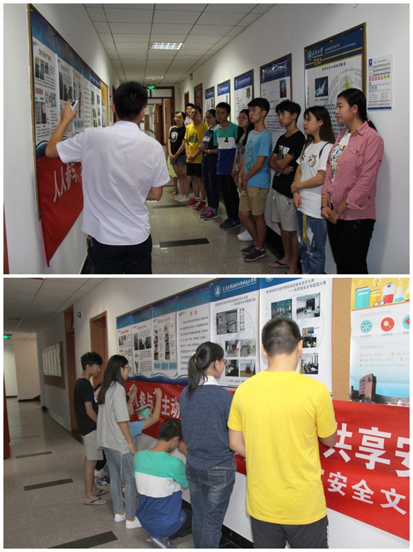 9月22日,学院选取安全建设规范实验室图片以及安全防护知识海报在学院一层大厅进行展示,学院部分本科生及研究生进行参观,参观过程中由免费成人影片 实验技术系列教师吕志伟老师结合免费成人影片 实际情况对规范要求进行讲解,向同学们强调操作规程,讲授佩戴防护设备注意事项,希望学生在实验过程中能做到看懂危险标识,了解潜在危险,懂得规避危险,做好安全防护。活动张贴了本次安全文化周活动主题条幅,充分调动了师生的主观能动性,学院师生积极在条幅上签写防护实验室安全标语,共同肩负起防护实验室安全的责任。