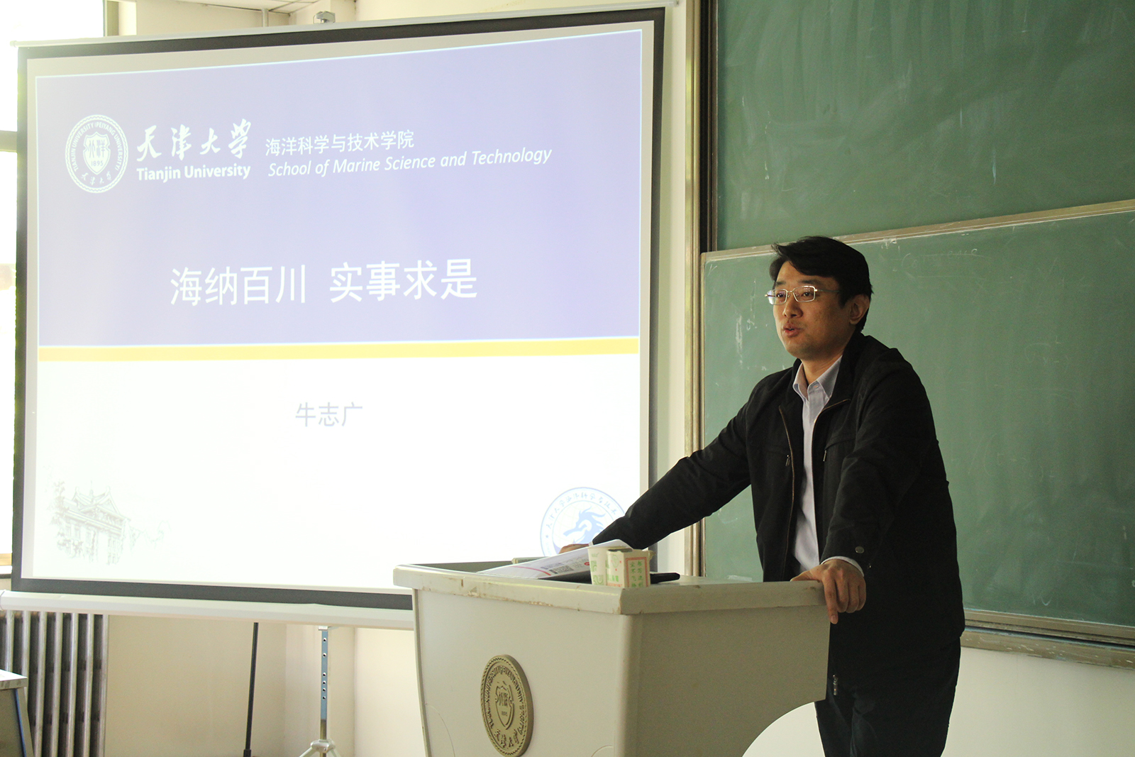 课堂上,牛志广引经据典以从古至今海洋价值变更为切入点,从经济、生态、军事、科研等方面出发,讲述海洋对人类发展的重要意义,同时也紧跟当前国家的发展形势,为学生们具体分析了近年来国家海洋战略的发展形势,从《全国海洋人才发展中长期规划纲要》到“海洋强国”战略到海洋经济科学发展示范区建立再到“21世纪海上丝绸之路”战略构想的提出,让同学们充分认识到海洋对于国家的重要战略意义。