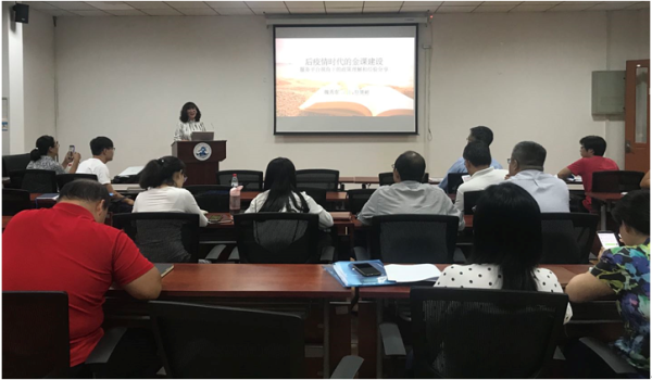 2020年9月15日,学院在319会议室举办本学期第一次师资培训系列讲座,智慧树魏秀东老师做后疫情时代的金课建设服务平台下视角下的政策理解和经验分享。从线上金课、线上线下混合式金课、线下金课、虚拟仿真金课、社会实践金课五个方面做了专业讲解,帮助老师们对金课的准备及后期的提报有了系统性的讲解。丁宸鹏老师讲述了智慧树平台使用流程,鼓励任课老师使用该平台授课。会后,学院教师与两位技术人员进行了深入交流。
