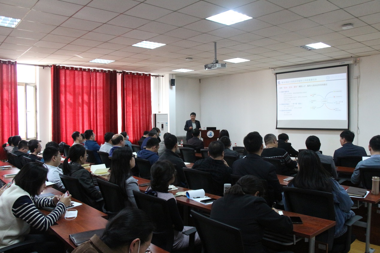 李锵介绍了来华留学战略意义及对学校发展的重要性,总结了我校当前留学生工作现状,结合我校留学生工作“十四五”规划和发展目标,详细的介绍了未来发展举措,并为与会教师讲解了留学生招生工作的具体事项。学院老师就留学生奖学金、生源质量等问题与国教学院相关负责人进行深入交流。