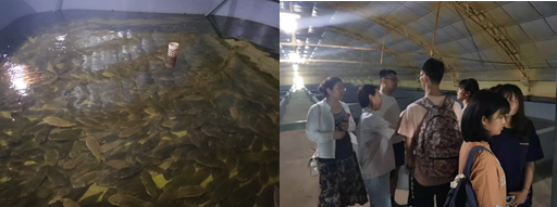 上午11时许,调研队伍到达天津海升水产养殖有限公司参观园区生态养殖池,结合技术人员讲解,详细了解了企业主要经营的半滑舌鳎、河豚与石斑鱼的养殖环境条件、市场行情以及天津市海产养殖企业发展状况等信息。