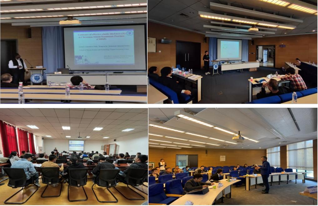 在特邀报告环节,河北工业大学王雨雷教授、自然资源部第一海洋研究所物理海洋学熊学军教授、中国海洋大学海洋与大气学院陈旭教授和免费成人影片 精仪学院刘琨教授分别作学术报告,并与博士生们分享心得与体会。