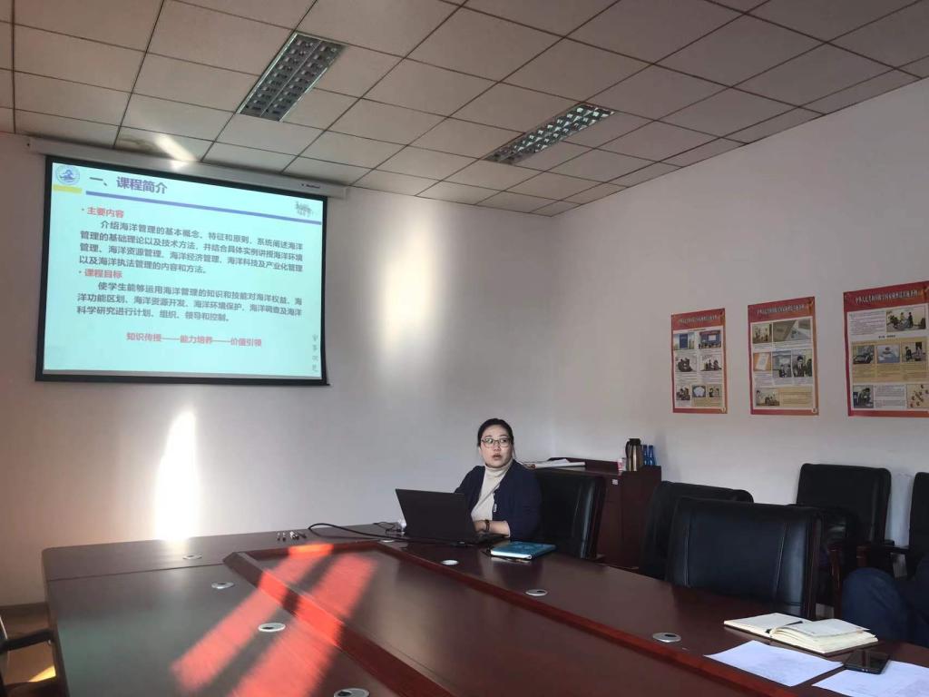 刘嘉玥老师从海洋管理课程的主要内容,海洋管理教育的核心目标展开,学生通过系统学习,能够明确海洋权利和应承担的责任,将人生发展目标与国家民族的海洋事业紧密相连,能够运用海洋管理的知识和技能对海洋权益、海洋功能、资源开发、环境保护、海洋调查及科学研究进行计划、组织、领导和控制,通过课程学习,能够进一步增强学生海洋强国意识,厚植爱国主义情怀,把家国情怀融入到今后的学习和工作中,把学生培养成为忠诚服务于国家的并适应海洋文化的管理人才。