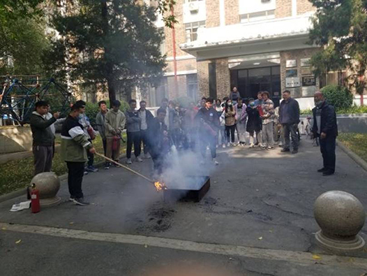 随后,在演习活动中,与会院领导与师生们一起进行了消防模拟逃生体验,借助逃生指示标志,俯身前行,选择正确的通道逃离“火场”,并实际操作灭火器等消防器材,担任“消防员”在“火场”救火,在严肃认真的氛围中上了一堂生动的消防安全课。