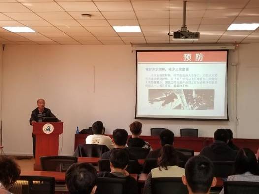 在消防安全培训中,弓保津向参加活动师生介绍消防知识要点,提醒大家要保持良好的消防安全习惯,从根源消除火灾隐患。同时,结合具体案例,向师生详细讲解疏散逃生知识、灭火器材使用方法。