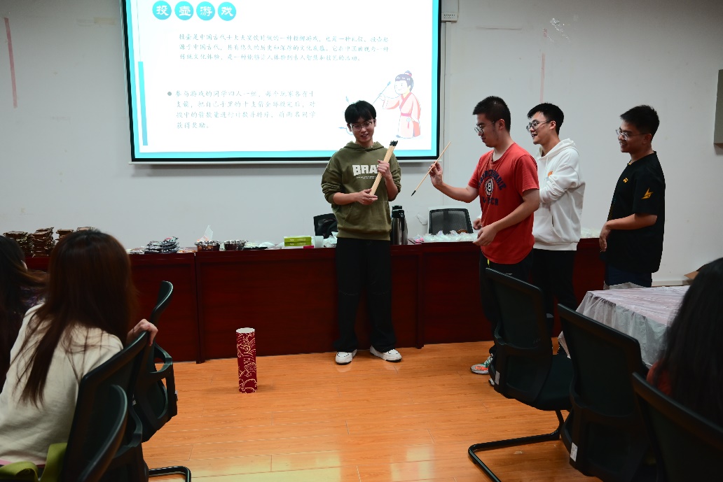 除了制作月饼之外,还有猜灯谜、投壶、蒙眼猜月饼、绘制石膏娃娃等多种小游戏供大家体验。猜灯谜环节师生们认真思考灯谜,争先恐后的竞猜,现场一片欢声笑语,大家畅聊中秋的来源、传承与典故,诉说节日的美好期盼。