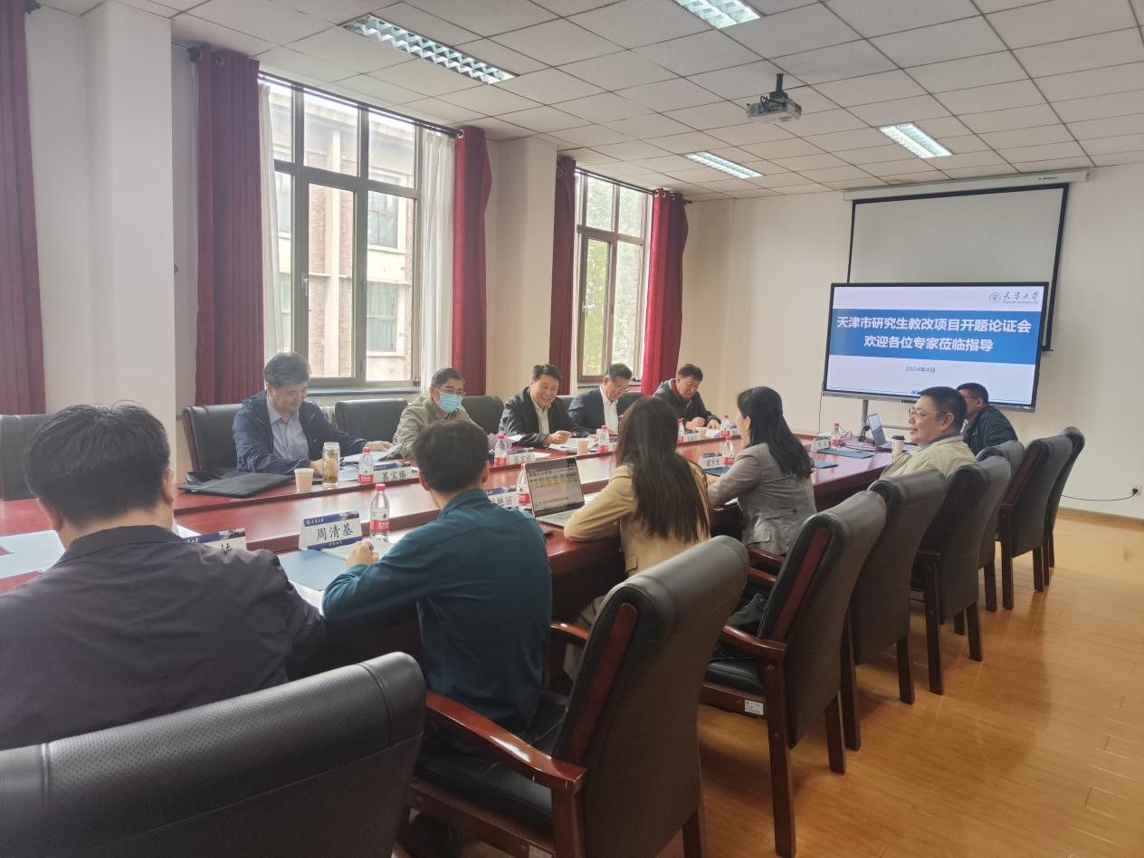 (通讯员刘永静)4月19日上午,免费成人影片 联合未来技术学院在卫津路校区第八教学楼307会议室召开天津市研究生教改项目开题论证会。会议邀请了天津市教委原主任靳润成教授、 天津工业大学原党委书记张宏伟教授、天津科技大学党委书记白海力教授、天津商业大学校长葛宝臻教授、天津理工大学原副校长魏克新教授作为专家组成员对该项目进行开题论证。