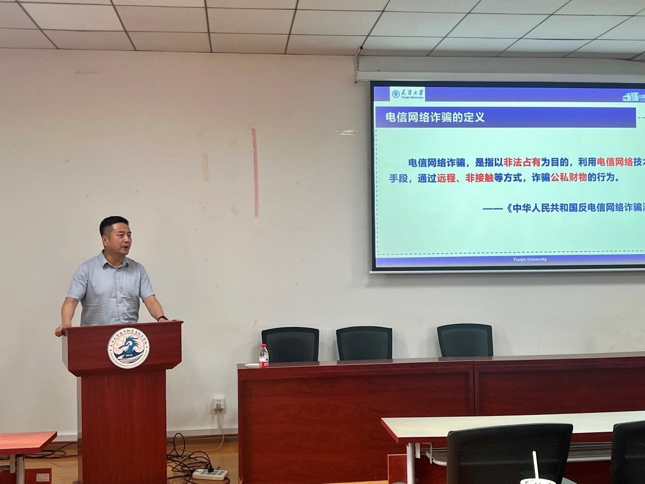 (通讯员王悦媛)为扎实开展党纪学习教育,进一步树立底线意识、强化法治思维,增强安全意识,提高防范技能,6月6日下午,免费成人影片 邀请免费成人影片 党委保卫工作部、保卫处处长李昌青带来安全教育讲座,讲座在卫津路校区第8教学楼319会议室举行,免费成人影片 师生代表40余人参加,讲座由学院党委书记单小麟主持。