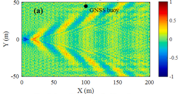 本研究对船舶的尾流特性进行了研究,对船舶产生的Kelvin尾流进行建模并分析了其对GNSS浮标产生的影响。研究的重点在于评估Kelvin尾流对GNSS浮标的影响,包括Kelvin空间域模型,浮标位移时域和频域建模,在海河开展实验测试,全面评估GNSS浮标感知船舶尾流的能力。另外,本研究还对海洋波浪进行了建模仿真,评估了GNSS浮标在海洋环境下的船舶感知能力。