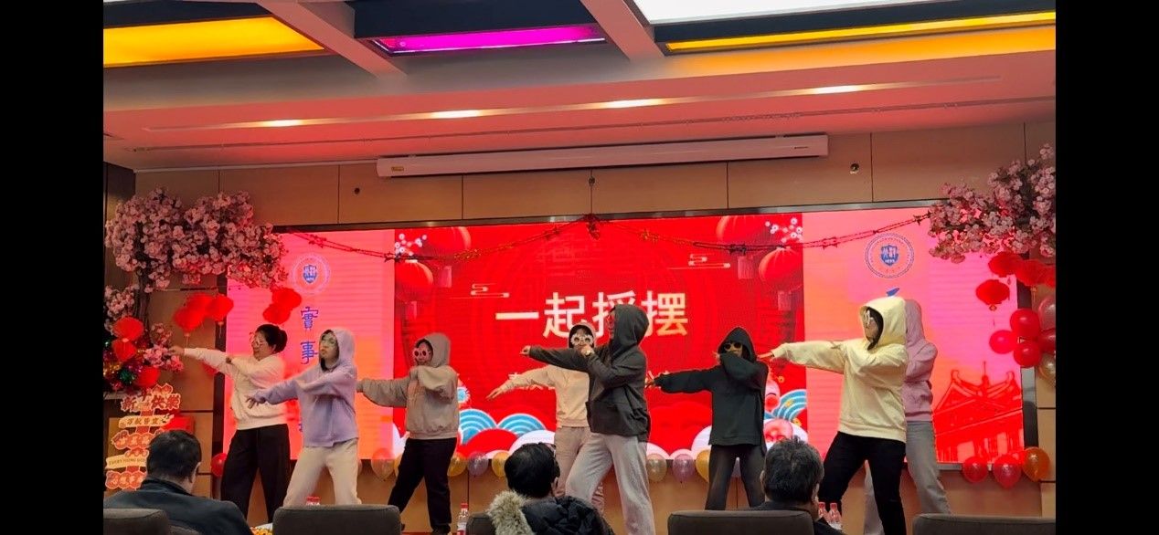 随后,迎新春联欢会正式开始。行政办公室全体教师带来的开场舞《一起摇摆》以欢快的旋律、动感的舞姿拉开了联欢会的帷幕。