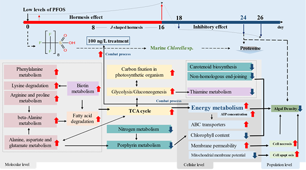 Active energy metabolism was used more for combating or counteracting the environmental stress caused by PFOS, rather than for growth and division.